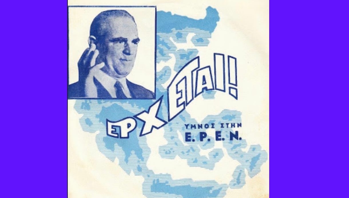 Ας ξεκινήσουμε με το πρώτο τραγούδι που αποτέλεσε τον ύμνο της ΕΡΕΝ και εξυμνούσε τον Εθνάρχη Κωνσταντίνο Καραμανλή.