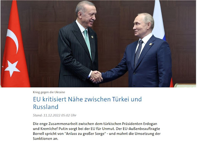 Η Ευρωπαϊκή Ένωση ανησυχεί ότι η συνεργασία της Τουρκίας με τη Ρωσία είναι πολύ στενή, παρά τον επιθετικό πόλεμο της Ρωσίας στην Ουκρανία και τις σκληρές δυτικές κυρώσεις κατά της Μόσχας.
