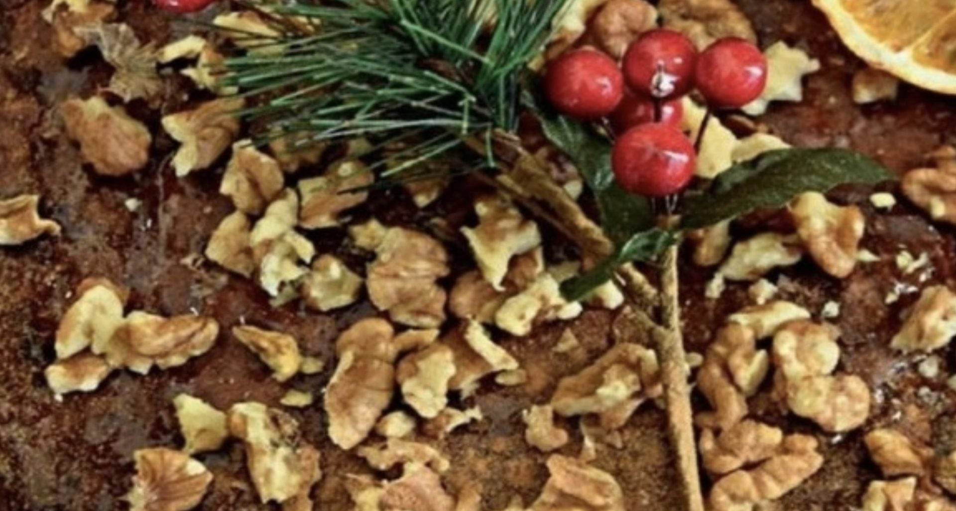 Διακόσμησε με μέλι (όσο περισσότερο τόσο πιο πολύ θα μοιάζει με μελομακάρονο, χονδροσπασμένα καρύδια και κανέλα).