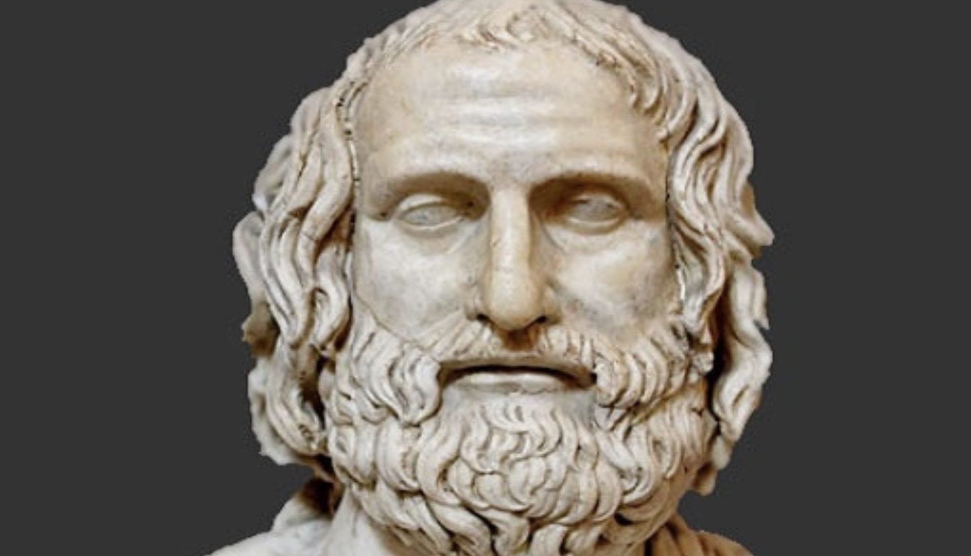 Στις προτομές του και στους ανδριάντες του[7] οι τεχνίτες του έδωσαν φυσιογνωμία σκυθρωπού, αγέλαστου και πικραμένου ανθρώπου, με κάπου βυθισμένα τα βαθουλά του μάτια – ίσως στα δράματα του νου του, που μας τα έχει εξομολογηθεί ο ποιητής στον «Ηρακλή» του (673-678):