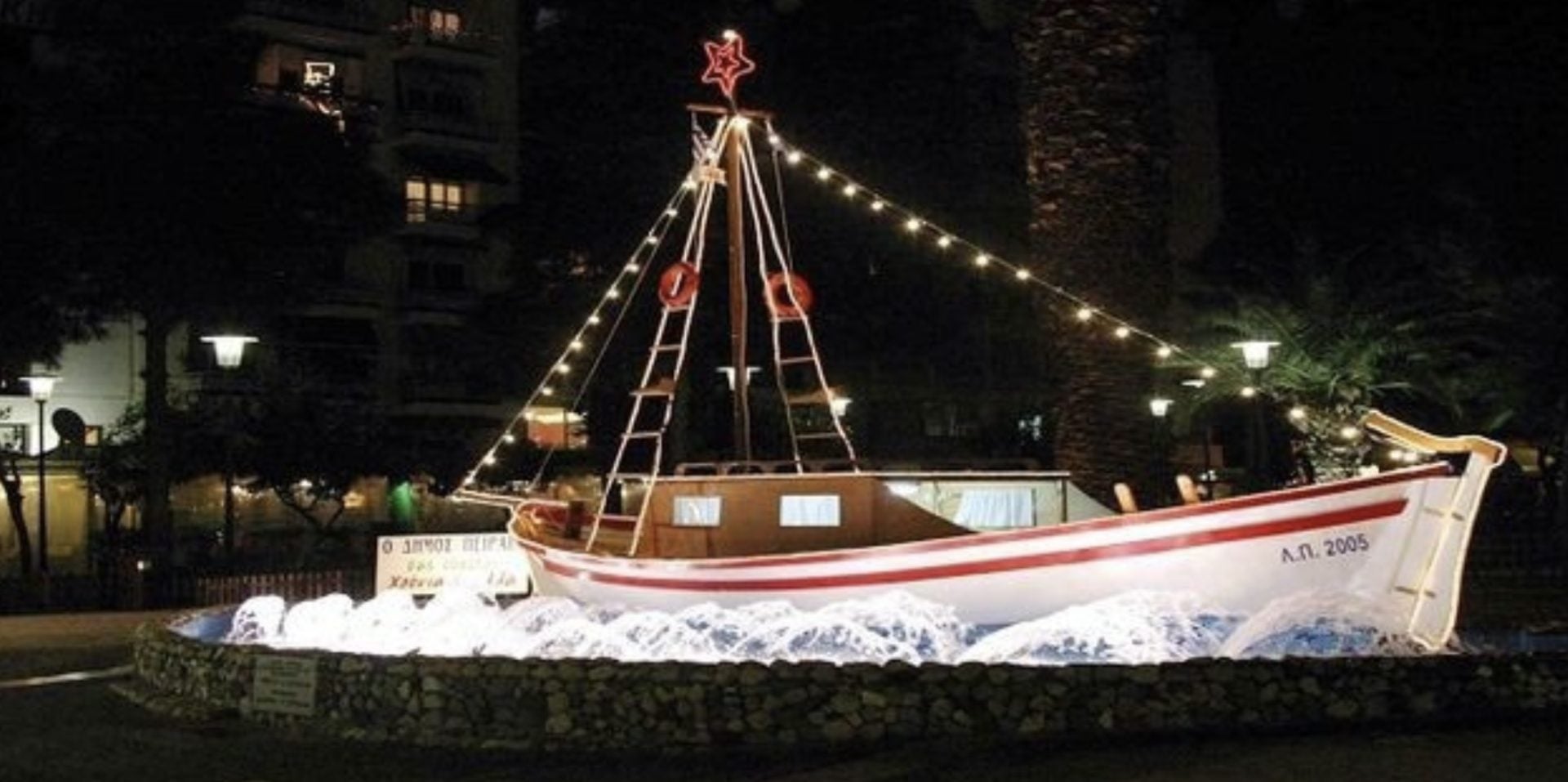 Στολισμένο καράβι στον Πειραιά, από προηγούμενα Χριστούγεννα