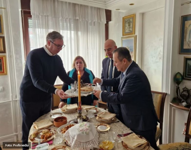 Ο Πρόεδρος Αλεξάνταρ Βούτσιτς φιλοξένησε σήμερα τον Έλληνα υπουργό Εξωτερικών Νίκο Δένδια και τον Ίβιτσα Ντάτσιτς στο σπίτι των γονιών του, με την ευκαιρία της γιορτής.