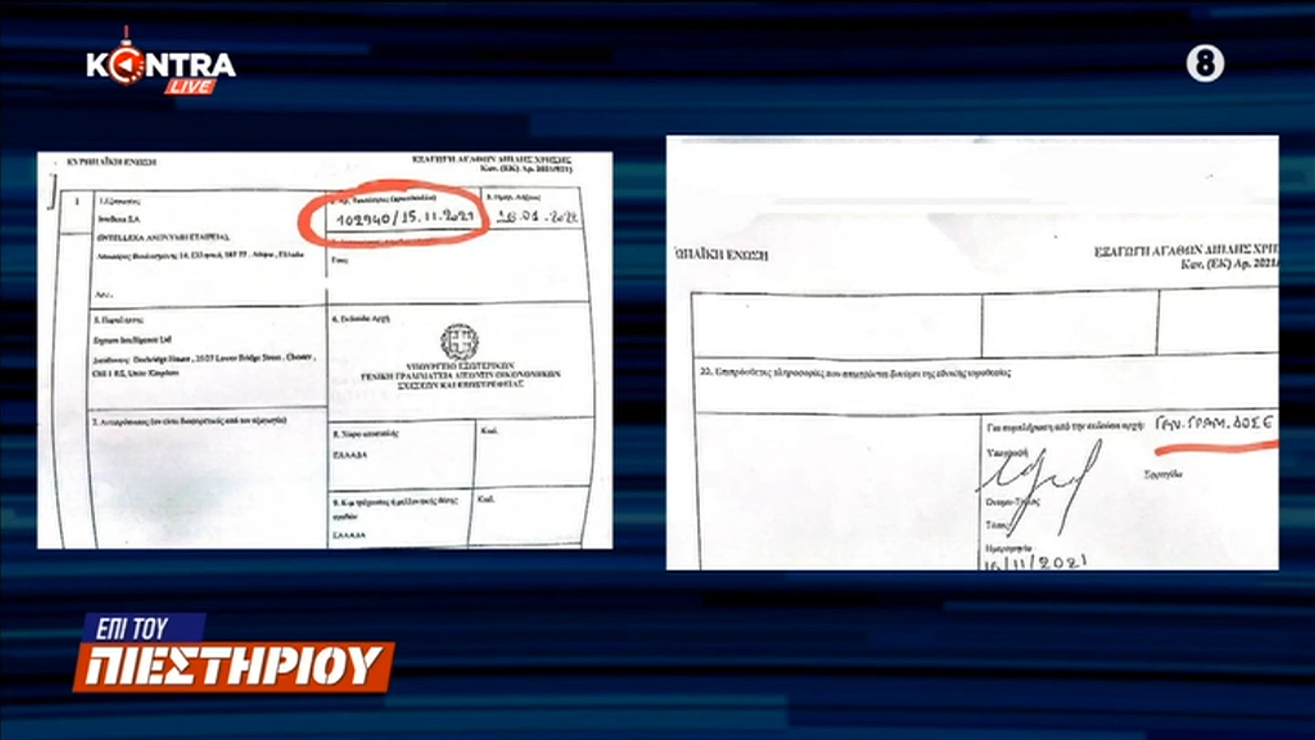 Σύμφωνα με τα έγγραφα του κόμματος της αξιωματικής αντιπολίτευσης, «στις άδειες, οι οποίες έχουν υπογραφεί από τον τοποτηρητή του Μητσοτάκη στο ΥΠΕΞ, δηλ. τον Γιάννη Σμυρλή, Γεν. Γραμμ. Διεθνών Οικονομικών Σχέσεων, αναγράφεται ρητά ότι πρόκειται για λογισμικό παρακολούθησης κινητών τηλεφώνων συνολικής αξίας 3.000.000 ευρώ, ενώ αποτυπώνεται ξεκάθαρα η νομιμοποίηση της παράνομης εξαγωγής μέσω μιας (φαινομενικά) άσχετης αγγλικής εταιρείας».