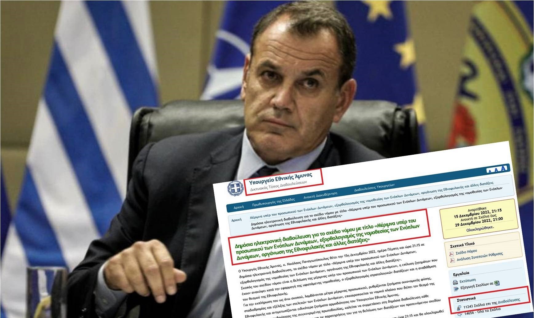Πιο συγκεκριμένα στις 15 Δεκ. 2022 κατατέθηκε προς διαβούλευση το σχέδιο νόμου «Μέριμνα υπέρ του προσωπικού των Ενόπλων Δυνάμεων, εξορθολογισμός της νομοθεσίας των Ενόπλων Δυνάμεων, οργάνωση της Εθνοφυλακής και άλλες διατάξεις». Χθες (29 Δεκ. 2022) ήταν η τελευταία ημέρα υποβολής σχολίων.