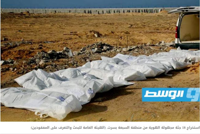 Η Γενική Αρχή Έρευνας και Ταυτοποίησης Αγνοουμένων ανακοίνωσε την εκταφή 18 αγνώστων σορών από την περιοχή Σαμπάα στη Σύρτη.