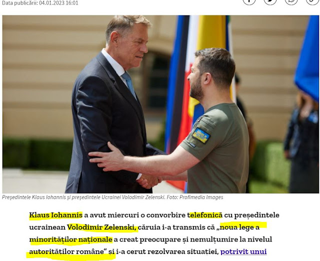 Την Τετάρτη, ο Γιοχάνις είχε τηλεφωνική επικοινωνία με τον Ουκρανό Πρόεδρο Ζελένσκι, στον οποίο μετέφερε ότι «ο νέος νόμος για τις εθνικές μειονότητες έχει δημιουργήσει ανησυχία και δυσαρέσκεια στο επίπεδο των ρουμανικών αρχών» και του ζήτησε να επιλύσει την κατάσταση, σύμφωνα με Δελτίο Τύπου της ρουμανικής Προεδρίας.