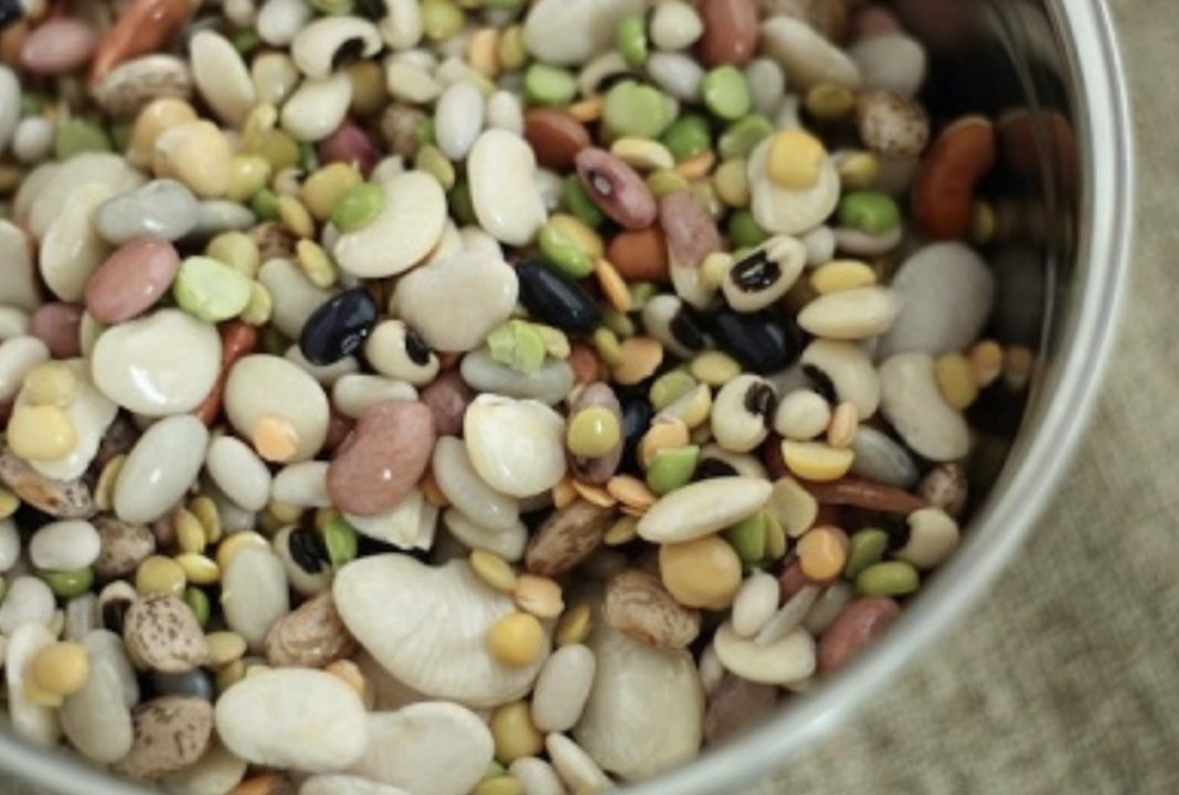 Από το προηγούμενο βράδυ βάζουμε στο νερό τα άσπρα φασόλια, τα ρεβύθια και το σιτάρι σε χωριστά μπολ. Την επόμενη μέρα βράζουμε το σιτάρι μέχρι να μαλακώσει και να αρχίσει να σκάει. Επίσης βάζουμε τα ρεβύθια (σε κρύο νερό ) και, όταν βράσουν περίπου μισή ώρα, προσθέτουμε τα άσπρα φασόλια. Μετά από άλλο ένα μισάωρο προσθέτουμε τα υπόλοιπα όσπρια (που βράζουν πιο εύκολα) και αφήνουμε το μείγμα να βράζει μέχρι όλα τα όσπρια να μαλακώσουν αλλά να μη λιώσουν και να χυλώσουν. Σουρώνουμε τα όσπρια και το σιτάρι, τα ανακατεύουμε σε μεγάλη σαλατιέρα και τα αλατίζουμε. Αφήνουμε να κρυώσουν.