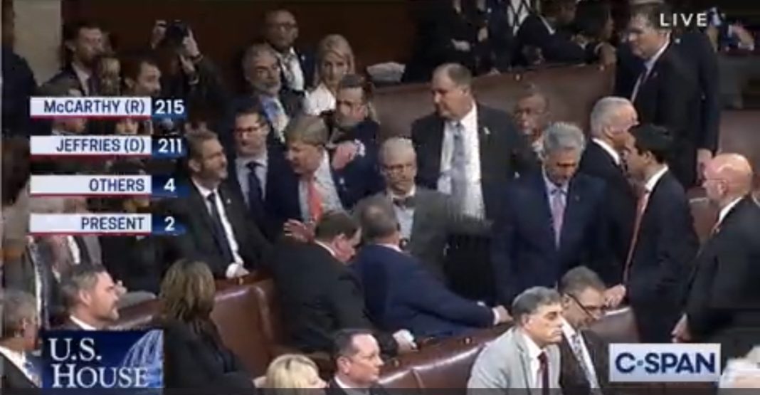 Στην τελευταία ψηφοφορία, ο Μακάρθι κατάφερε να εξασφαλίσει 215 ψήφους, ενώ αρχικά είχε ξεκινήσει με 202….