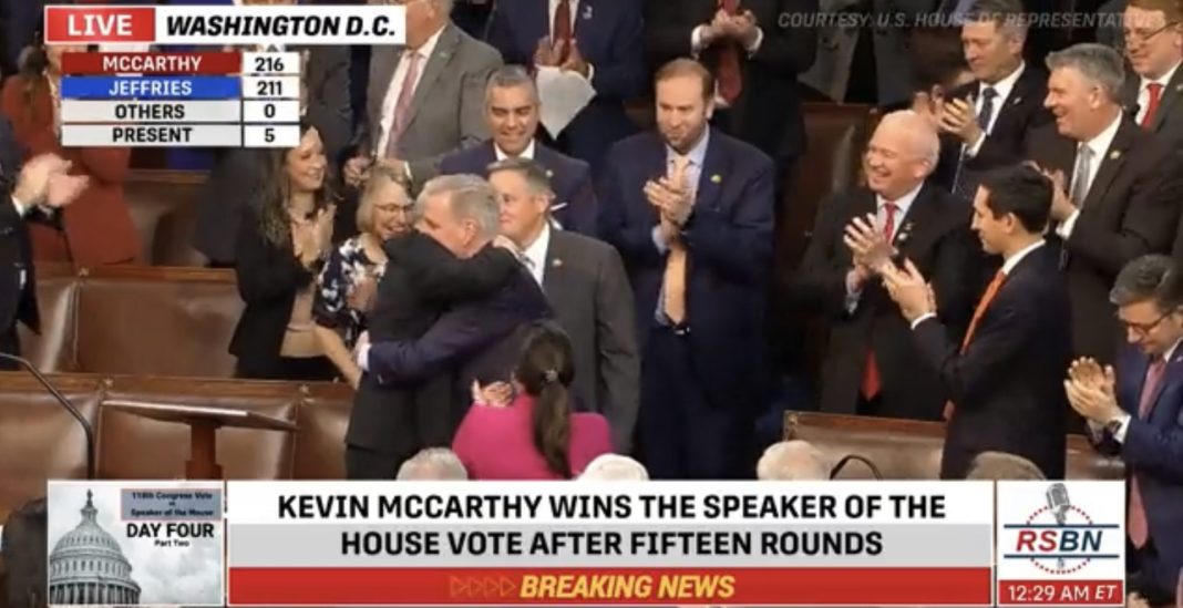 14 άγονες ψηφοφορίες χρειάστηκαν ώστε την 15η φορά ο Κέβιν Μακάρθι να εκλεγεί τελικά ο Πρόεδρος του Αμερικανικού κογκρέσου. Ένας «πρόεδρος» υπό αίρεση, καθώς ανά πάσα στιγμή αρκεί ένας ρεπουμπλικανός να καταθέσει πρόταση μομφής για να τεθεί ζήτημα εμπιστοσύνης στο πρόσωπο του! Κάτι τέτοιο δεν έχει ξαναγίνει πάντως εδώ και 165 χρόνια στις ΗΠΑ.