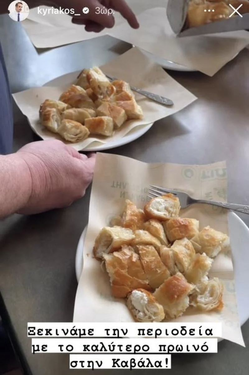 «Ξεκινάμε την περιοδεία με το καλύτερο πρωινό στην Καβάλα» έγραψε ο Κυριάκος στον προσωπικό του λογαριασμό, την ώρα που οι αστυνομικοί είχαν παραταχθεί για να μην τον πλησιάσει ούτε μύγα!