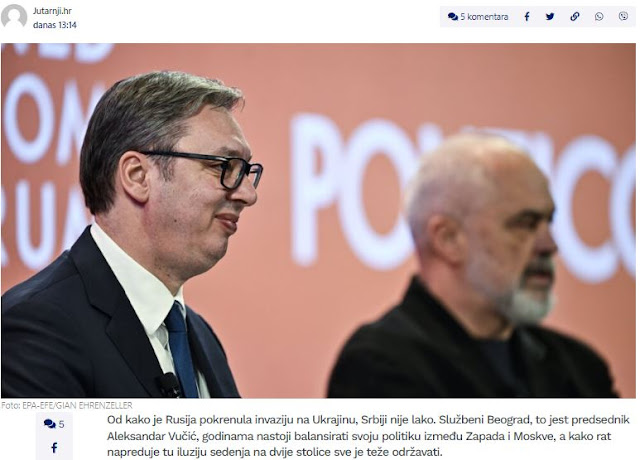 Από τότε που η Ρωσία ξεκίνησε την εισβολή στην Ουκρανία, δεν ήταν εύκολο για τη Σερβία. Το επίσημο Βελιγράδι, δηλαδή ο Πρόεδρος Αλεξάνταρ Βούτσιτς, προσπαθεί να ισορροπήσει την πολιτική του μεταξύ Δύσης και Μόσχας εδώ και χρόνια, και καθώς ο πόλεμος εξελίσσεται, αυτή η ψευδαίσθηση να κάθεσαι σε δύο καρέκλες γίνεται όλο και πιο δύσκολο να διατηρηθεί, γράφει σερβικό δημοσίευμα.