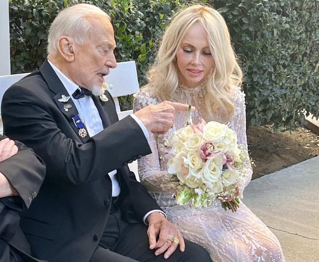 «Για τα 93α γενέθλιά μου (…) με χαρά μου ανακοινώνω ότι η εδώ και χρόνια αγαπημένη μου, η δρ Άνκα Φορ και εγώ, παντρευτήκαμε», έγραψε στο Twitter ο αστροναύτης αναρτώντας μια φωτογραφία του ιδίου και της Φορ, η οποία είναι 63 ετών, σύμφωνα με τα αμερικανικά μέσα ενημέρωσης. «Ενωθήκαμε με τα ιερά δεσμά του γάμου στη διάρκεια μιας μικρής ιδιωτικής τελετής στο Λος Άντζελες (δυτικές Ηνωμένες Πολιτείες) και είμαστε ενθουσιασμένοι σαν έφηβοι».