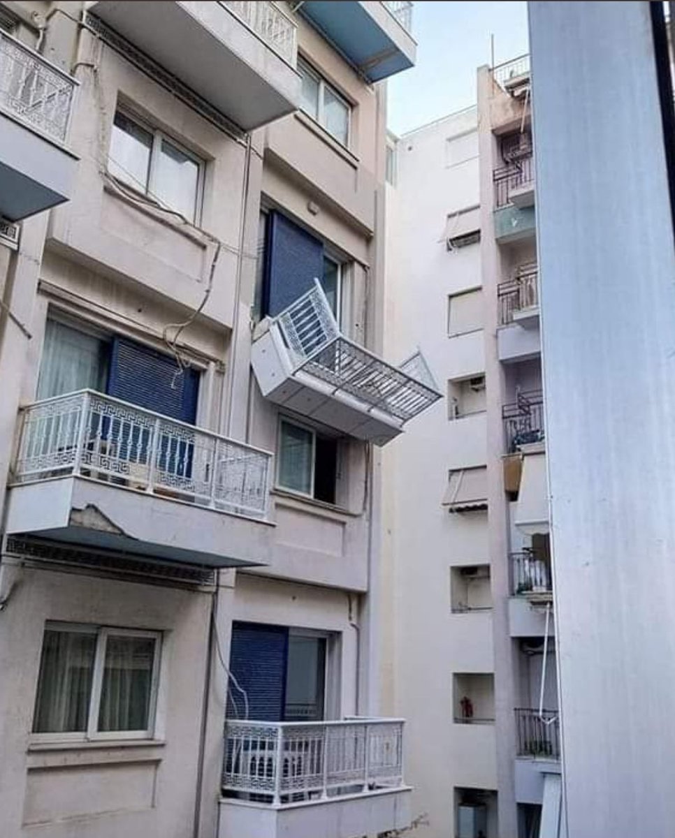 Σάλο εχουν προκαλέσει οι εικόνες με ένα μπαλκόνι σε ξενοδοχείο στη Συγγρού να κρέμεται στον αέρα, έτοιμο να καταρρεύσει.
