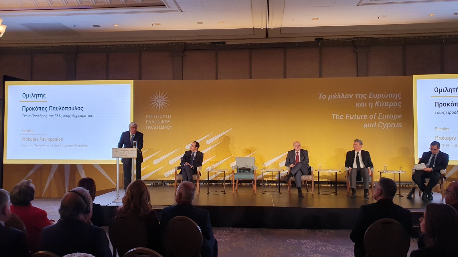 Μιλώντας με θέμα «Το «υπαρξιακό» διακύβευμα της Ευρωπαϊκής Ενοποίησης υπό τα «καυδιανά δίκρανα» της τρέχουσας κρίσιμης διεθνούς συγκυρίας», στο πλαίσιο της εκδήλωσης του Ινστιτούτου Ελληνικού Πολιτισμού με θέμα «Το Μέλλον της Ευρώπης και η Κύπρος», ο τέως Πρόεδρος της Δημοκρατίας, Ακαδημαϊκός και Επίτιμος Καθηγητής της Νομικής Σχολής του ΕΚΠΑ κ. Προκόπιος Παυλόπουλος επισήμανε, τα εξής: