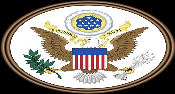 Στο κέντρο του εμβλήματος απεικονίζεται ένας αετός. Με το αριστερό πόδι του κρατά μία φαρέτρα με τόξα, που συμβολίζει τη δύναμη του πολέμου. Μετά τον Β’ Παγκόσμιο Πόλεμο, με διάταγμα του προέδρου Χάρι Τρούμαν, στις 25 Οκτωβρίου του 1945, στο δεξί πόδι προστέθηκε ένα κλαδί ελιάς, σύμβολο της ειρήνης. Το στήθος του αετού καλύπτεται από μία ασπίδα με 13 κόκκινες και λευκές ρίγες, όσες και οι πολιτείες που ενώθηκαν για να δημιουργήσουν το νέο κράτος. Η μεγάλη μπλε ρίγα, που υπάρχει στην κορυφή τους, αντιπροσωπεύει τον πρόεδρο και το κογκρέσο. Το λευκό χρώμα συμβολίζει την αγνότητα και την αθωότητα, το κόκκινο τη σκληρότητα και το μπλε τη δικαιοσύνη. Ο αστερισμός με τα 13 αστέρια πάνω από το κεφάλι του αετού συμβολίζει τη γέννηση μιας νέας χώρας ανάμεσα στα υπόλοιπα έθνη.