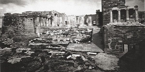 Το πιο εντυπωσιακό όμως είναι ότι με τα ερείπια του κατεστραμμένου ναού κτίσανε ένα τείχος στην πλευρά του ιερού βράχου που βλέπει προς βορράν, δηλαδή προς την αγορά. Κατ΄ αυτόν τον τρόπο, δεν θα ήταν δυνατόν από κανέναν Αθηναίο να παραβλέψει την καταστροφή. Η τελευταία επιδεικνύεται μεγαλοπρεπώς, και είναι ορατή ακόμα και σήμερα όπου και να σταθείς. Οι επόμενες γενιές είναι υποχρεωμένες να το αντικρίζουν, να βιώνουν την καταστροφή της πόλης και να σέβονται τους προγόνους των και συνάμα να κάνουν τα πράγματα καλύτερα από αυτούς.
