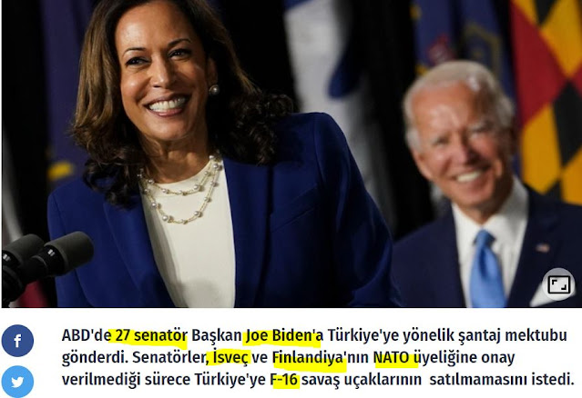 Εικοσιεπτά γερουσιαστές έστειλαν επιστολή στον Πρόεδρο Τζο Μπάιντεν αναφέροντας ότι οι πωλήσεις F-16 στην Τουρκία δεν θα έπρεπε να γίνουν εκτός εάν εγκριθεί η ένταξη της Σουηδίας και της Φινλανδίας στο ΝΑΤΟ, γράφει τούρκικο δημοσίευμα.