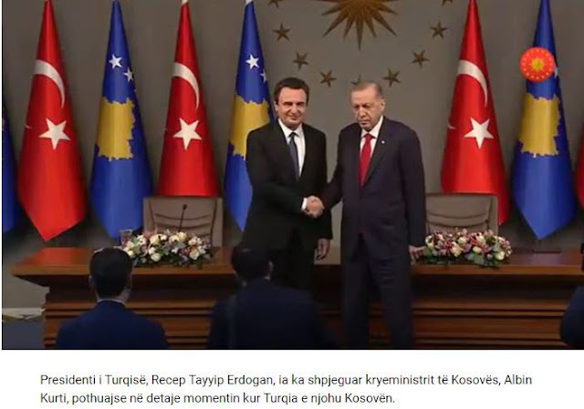 Κατά την επίσημη επίσκεψή του Αλμπίν Κούρτι στην Τουρκία, ο πρόεδρος της Τουρκίας Ρετζέπ Ταγίπ Ερντογάν εξήγησε στον πρωθυπουργό του Κοσσυφοπεδίου σχεδόν αναλυτικά τη στιγμή που η χώρα του αναγνώρισε το Κόσοβο.