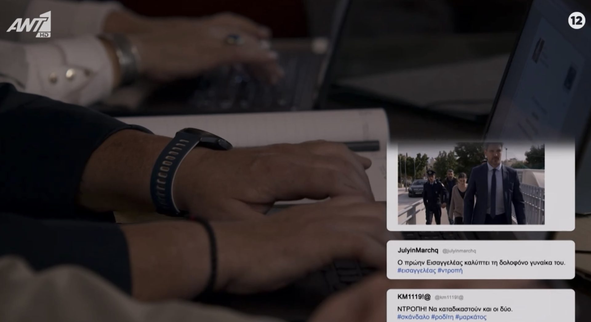 Στη σκηνή βλεπουμε τον δικηγόρο Χατζη να δίνει εντολή να κατασπαράξουν τα social media την πρωταγωνίστρια της σειράς. Ετσι βλεπουμε μορφωμένους ανθρώπους, δικηγόρους και κάποιας ώριμης ηλικίας μάλιστα, να μετατρέπονται σε ανώνυμα διαδικτυακά Τρολ που γράφουν ανακρίβειες και προωθούν εσκεμμένα πληροφορίες που στόχο εχουν την χειραγώγηση του κοινού.