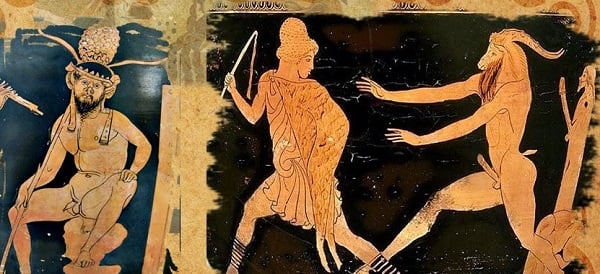 Σ’ όλους σχεδόν τους μύθους, ο Διόνυσος παρουσιάζεται ανάμεσα σε μια φασαριόζικη ακολουθία, όπου οι Μαινάδες αποτελούν το θηλυκό στοιχείο και οι Σάτυροι, οι Σειληνοί και ο Πάνας το αρσενικό.