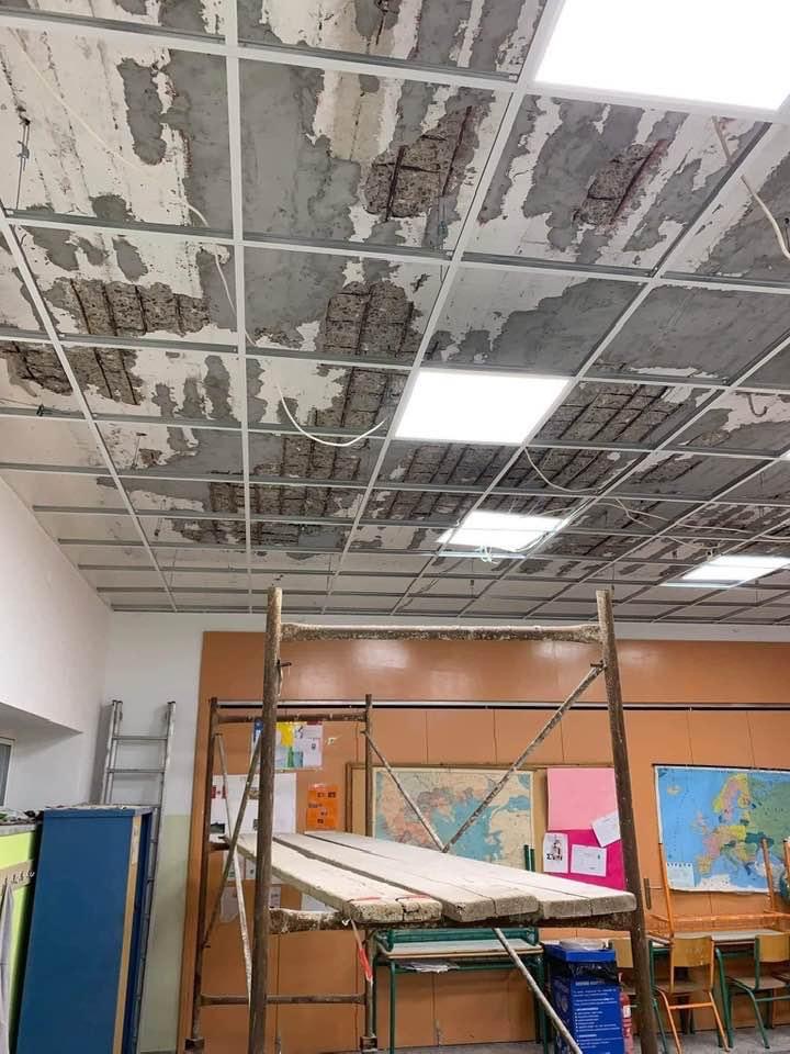 Ο διευθυντής του Γεωδυναμικού Ινστιτούτου καταγγέλλει ότι μαθητές και δάσκαλοι κάνουν μάθημα με τον κίνδυνο να πέσει στα κεφάλια τους το ταβάνι, ενώ κατακεραυνώνει τη δημοτική αρχή που ακόμα δεν έχει φροντίσει για τις άθλιες συνθήκες που βάζουν σε κίνδυνο τη ζωή των παιδιών.