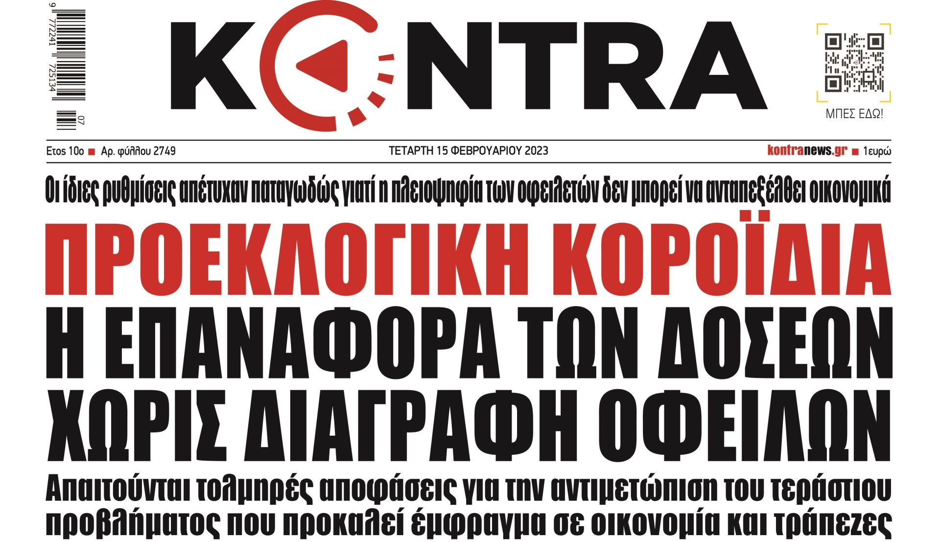 Το τεράστιο πρόβλημα με τις οφειλές στο δημόσιο απαιτεί τολμηρές πρωτοβουλίες που θα περιλαμβάνουν γενναία διαγραφή του χρέους. Σε διαφορετική περίπτωση η κατάσταση θα παραμένει ως έχει, το δημόσιο δεν θα εισπράττει και εκατοντάδες χιλιάδες πολίτες θα συνεχίσουν να βρίσκονται σε ομηρία. Είναι δώρον άδωρο να επαναφέρεις τις 120 δόσεις σε κάποιον ο οποίος δεν μπόρεσε να τις εξυπηρετήσει με την προηγούμενη ρύθμιση.