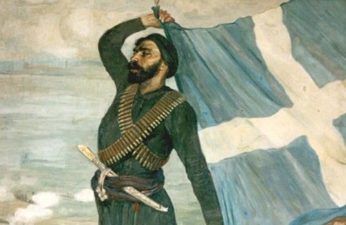 Ο Σπύρος Καγιαλές – Καγιαλεδάκης αρπάζει την σημαία και την ανυψώνει κάνοντας το ίδιο του το σώμα κοντάρι!