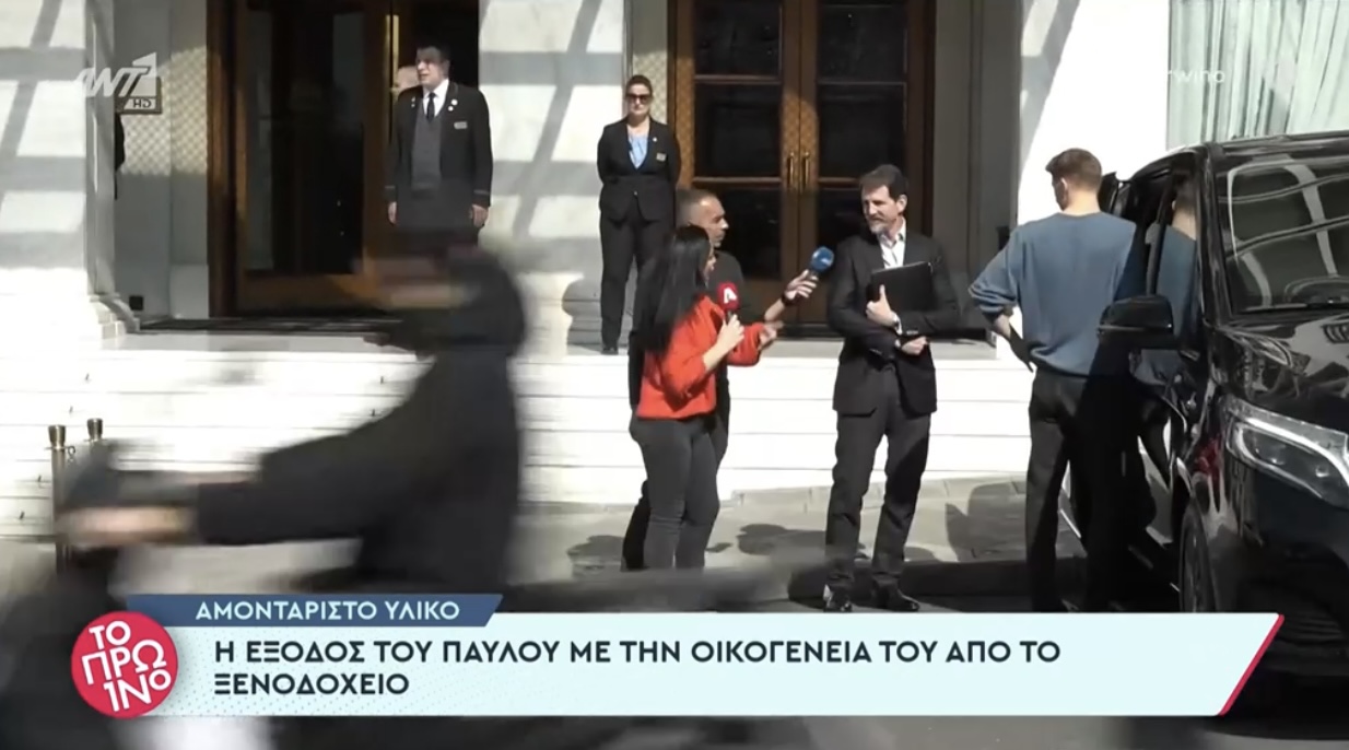 Οι κάμερες εντόπισαν τον γιο του τέως βασιλιά Κωνσταντίνου, έξω από το ξενοδοχείο «Μεγάλη Βρετάννια» όπου έχει καταλύσει με την οικογένειά του καθώς τις προηγούμενες μέρες έγινε το μνημόσυνο των 40 ημερών και τρισάγιο στη μνήμη του πατέρα του. Πρωτοσελιδα – Ειδήσεις