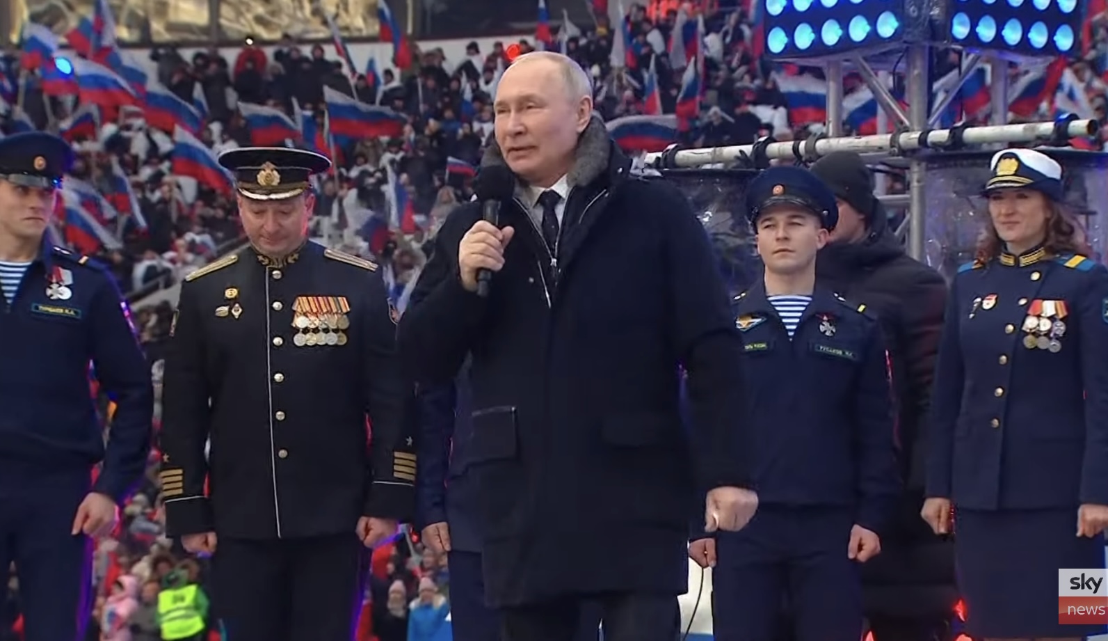 Περίπου 200.000 άνθρωποι συγκεντρώθηκαν στη Μόσχα για να ακούσουν τον Βλαντιμίρ Πούτιν να μιλάει σε συγκέντρωση, ενόψει της πρώτης επετείου της εισβολής της Ρωσίας στην Ουκρανία.