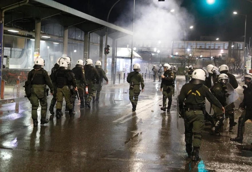 Οι άνδρες των ΜΑΤ απάντησαν με χρήση δακρυγόνων και χειροβομβίδων κρότου λάμψης.