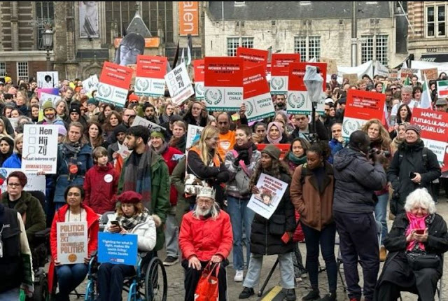Οι εθελοντές της Διεθνούς Πλατφόρμας Σπασμένης κιμωλίας φώναξαν συνθήματα στην Πλατεία Νταμ του Άμστερνταμ με πλακάτ και πανό που έγραφαν «Σταματήστε τον Ερντογάν», «Ελευθερία για τις γυναίκες και τα παιδιά», «Τέλος στην καταπίεση», στην πλατεία DAM του Άμστερνταμ, καταλήγει το δημοσίευμα.