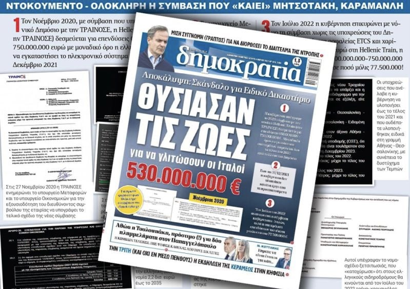 Η «δημοκρατία» έφερε τη Δευτέρα στο φως για πρώτη φορά τα ατράνταχτα ντοκουμέντα που αποδεικνύουν το ξεδιάντροπο αλισβερίσι μεταξύ της ελληνικής κυβέρνησης και των Ιταλών, δήθεν επενδυτών, της Hellenic Train.