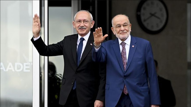 Οι αρχηγοί των πολιτικών κομμάτων που απαρτίζουν τo “Τραπέζι των Έξι” ανακοίνωσαν τον αρχηγό του Λαϊκού Δημοκρατικού Κόμματος -CHP, Κεμάλ Κιλιτσντάρογλου ως υποψήφιο για την Προεδρία της Εθνικής Συμμαχίας μετά τη σημερινή τους συνάντηση.