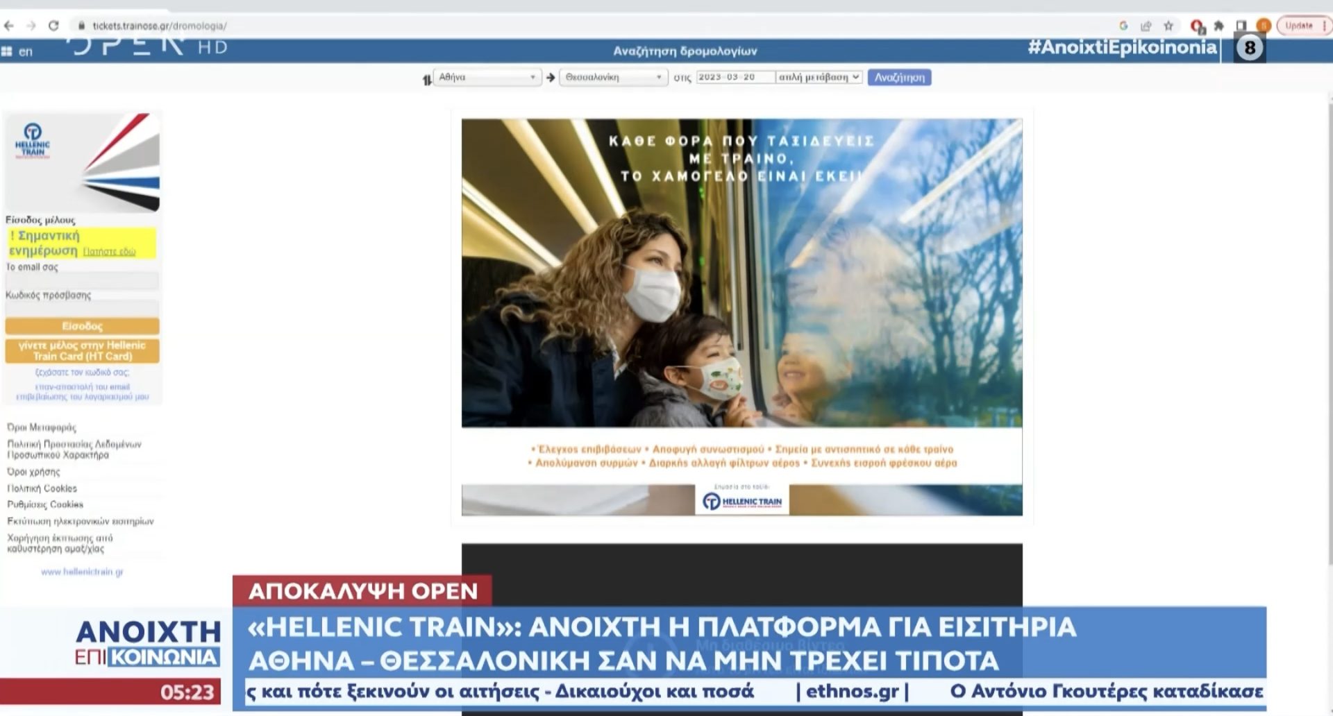 Στον «κόσμο» της φαίνεται πως είναι η εταιρεία Hellenic Train, η οποία ακόμα και μετά την εθνική τραγωδία στα Τέμπη, συνεχίζει να πουλά κανονικά εισιτήρια από Αθήνα για Θεσσαλονίκη.