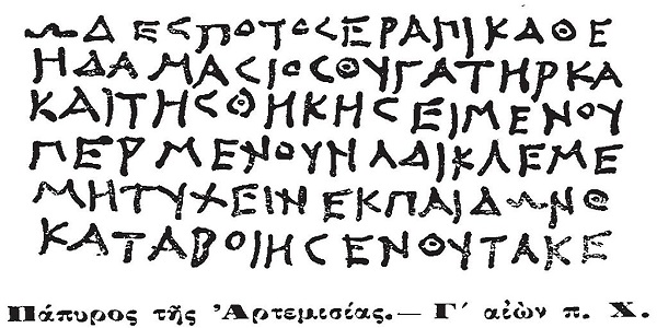 Η κορούλα της μόλις είχε πεθάνει αλλά δεν είχε χρήματα να τη θάψει. Ο άντρας της, ο οποίος την είχε εγκαταλείψει λίγο νωρίτερα, είχε πάρει μαζί του τις κοινές οικονομίες. Γι’ αυτό και η Αρτεμισία, μια Ελληνίδα που ζούσε στην Αίγυπτο περί τον 4ο αιώνα π.Χ., προτού δηλαδή την κατακτήσει ο Μέγας Αλέξανδρος, τον καταράστηκε. Οχι μόνο ιδιωτικά αλλά και δημόσια, απευθύνοντας γράμμα στον Αιγύπτιο θεό Οσόραπη, το οποίο κατέθεσε στο τέμενός του, στην πόλη Ναύκρατη, εκλιπαρώντας για τη βοήθειά του.