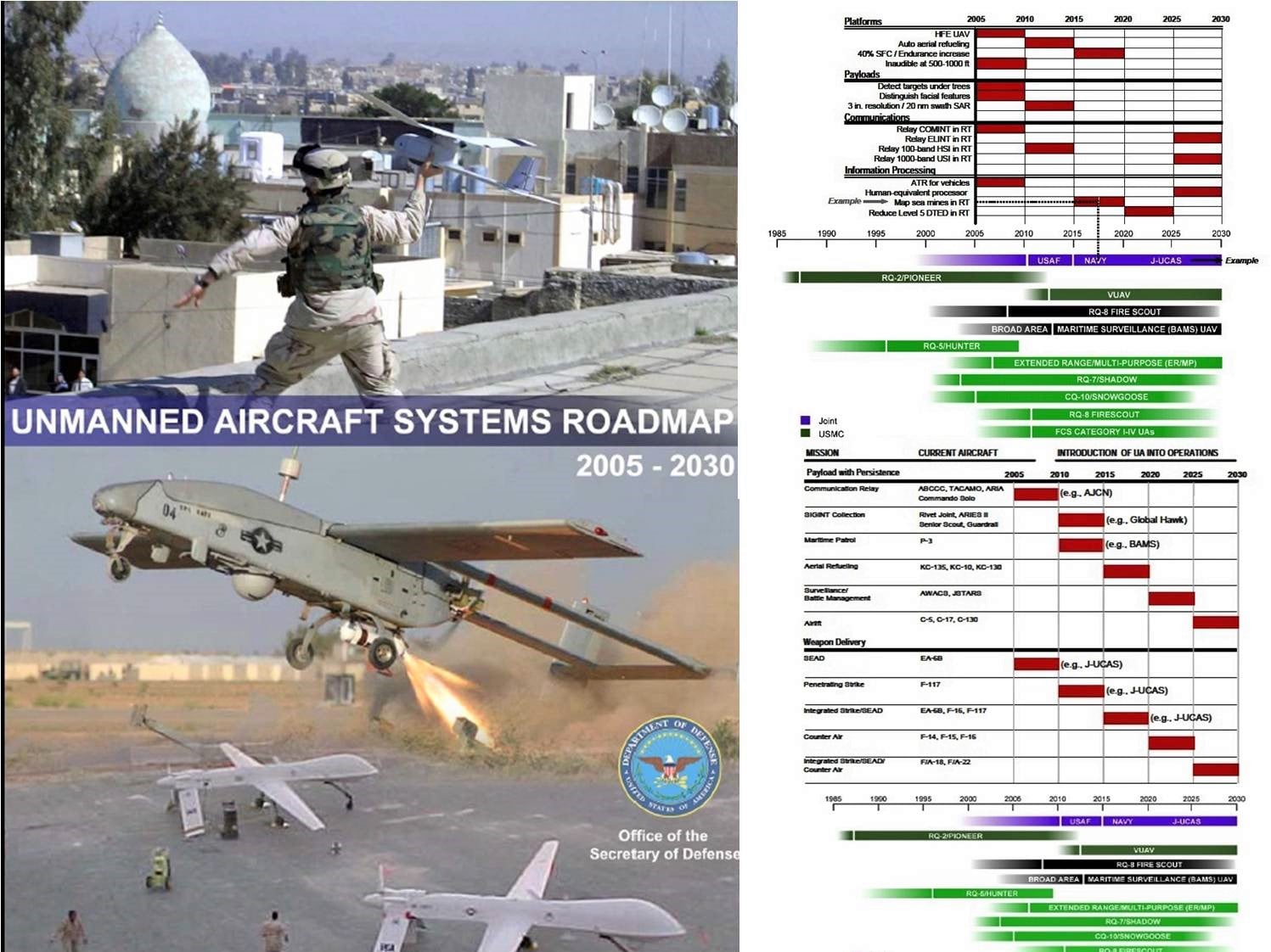 Ο σκοπός του οδικού χάρτη του ΥΠΕΘΑ (DOD) των ΗΠΑ, είναι να καθοδηγήσει και υποβοηθήσει τη διαδικασία σχεδιασμού, για την ανάπτυξη των στρατιωτικών μη επανδρωμένων αεροσκαφών (UA) την περίοδο 2005-2030.