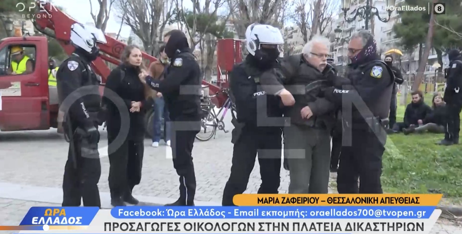 Ειδικότερα, τα εν λόγω άτομα πραγματοποιούσαν διαμαρτυρία κατά της κοπής δένδρων στην πλατεία Αρχαίας Αγοράς, στο κέντρο της Θεσσαλονίκης.