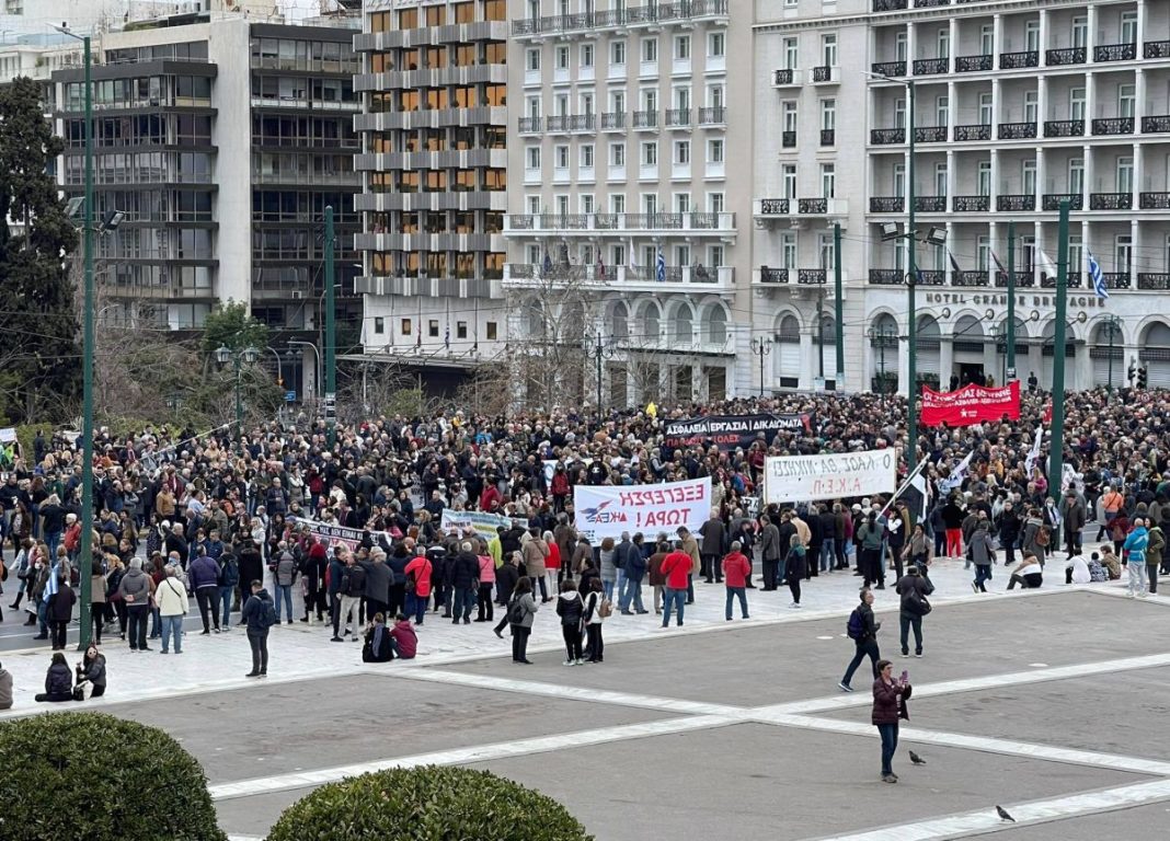 Με χιλιάδες κόσμου έχει πλημμυρίσει το κέντρο της Αθήνας στο πλαίσιο της 24ωρης απεργίας που έχουν προκηρύξει ΓΣΕΕ και ΑΔΕΔΥ με αφορμή το τραγικό δυστύχημα στα Τέμπη.