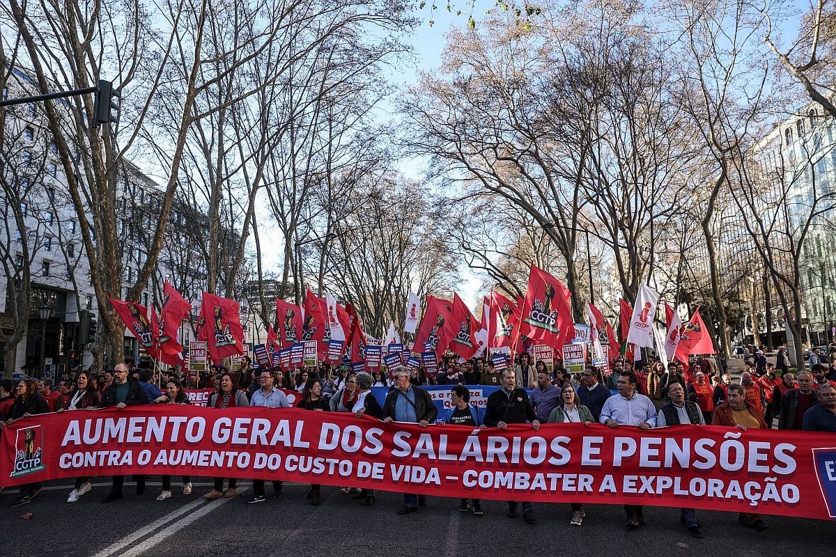Χιλιάδες διαδηλωτές εργαζόμενοι απ’ όλη την Πορτογαλία πλημμύρισαν τους δρόμους της Λισαβόνας ζητώντας αυξήσεις μισθών και μέτρα για την αντιμετώπιση του υψηλού κόστους διαβίωσης.