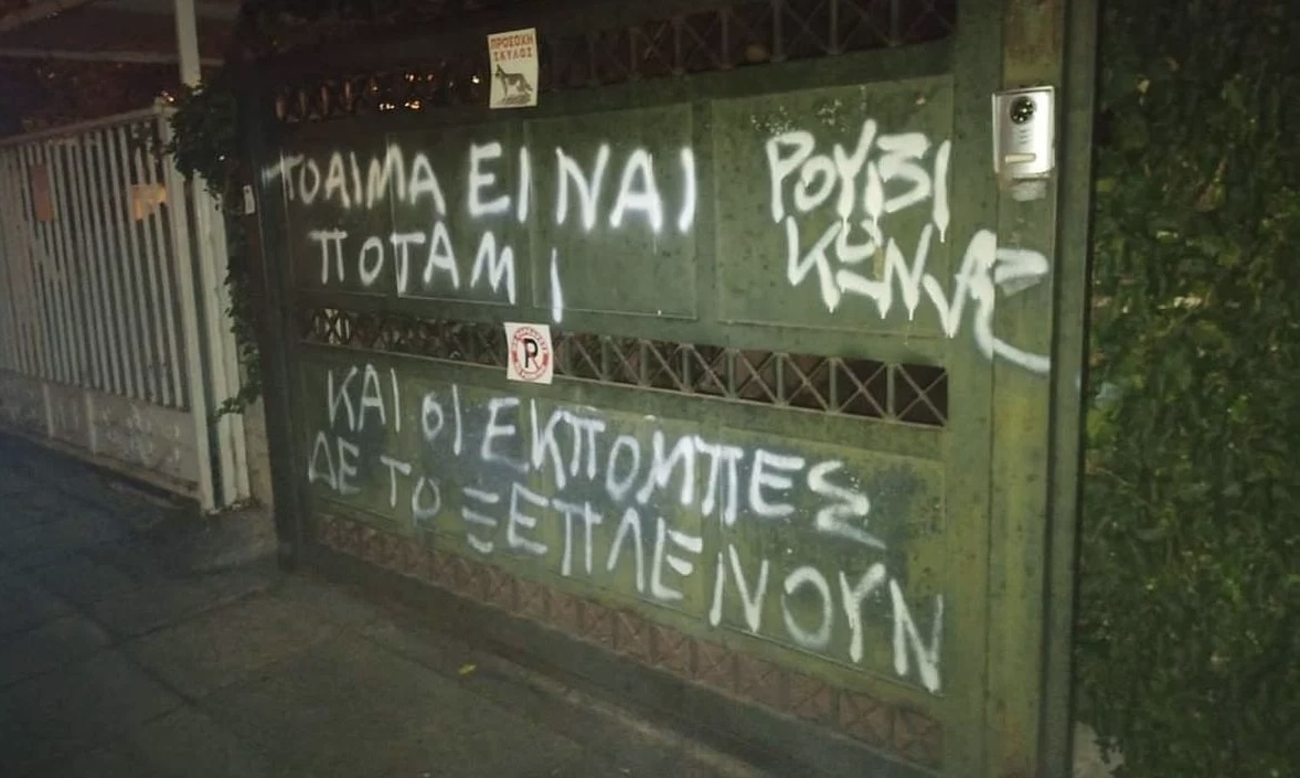 «Παρέμβαση του Ρουβίκωνα στο σπίτι του δημοσιογράφου Σταύρου Θεοδωράκη στο Χαλάνδρι. Κανένα κανάλι και καμία εκπομπή-πλυντήριο, όπως οι “Πρωταγωνιστές” του Θεοδωράκη, δεν μπορούν να θολώσουν πια το τοπίο και να βγάλουν καθαρούς τους υπεύθυνους του εγκλήματος των Τεμπών. ΤΟ ΑΙΜΑ ΕΙΝΑΙ ΠΟΤΑΜΙ ΚΑΙ ΟΙ ΕΚΠΟΜΠΕΣ ΔΕΝ ΤΟ ΞΕΠΛΕΝΟΥΝ».