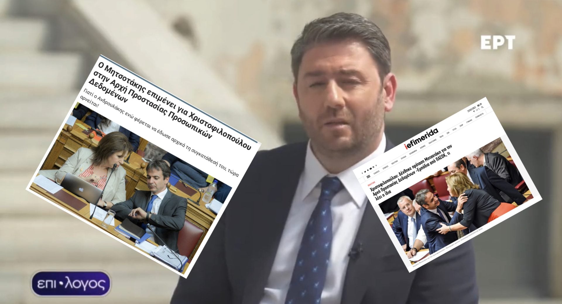 Ο Νίκος Ανδρουλάκης αποκάλυψε πως στη δεξίωση της Προέδρου της Δημοκρατίας στο Προεδρικό Μέγαρο για την αποκατάσταση της δημοκρατίας, ο Κυριάκος Μητσοτάκης τον ρώτησε αν θέλει να συμπράξουν, για να αλλάξει η ηγεσία της Αρχής Προστασίας Προσωπικών Δεδομένων, δηλαδή να «φαγωθεί» ο Κωνσταντίνος Μενουδάκος!