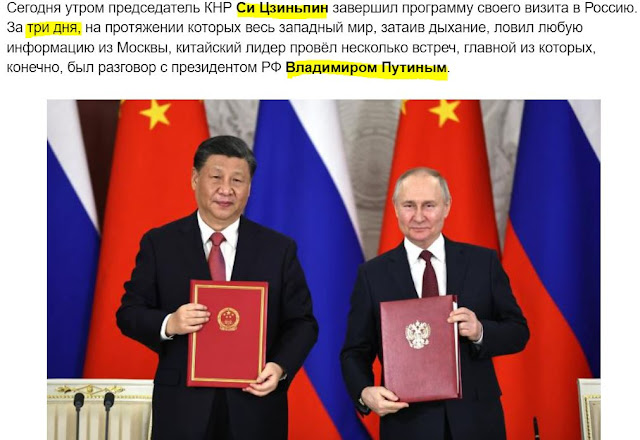 Επί τρεις ημέρες, όλος ο δυτικός κόσμος καθόταν με κομμένη την ανάσα, περιμένοντας οποιαδήποτε πληροφορία από τη Μόσχα, όπου ο Κινέζος ηγέτης είχε αρκετές συναντήσεις, με σημαντικότερη αυτή με τον Ρώσο πρόεδρο Βλαντίμιρ Πούτιν, γράφουν τα ρωσικά κρατικά ΜΜΕ.