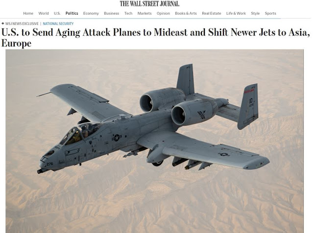 Οι ΗΠΑ θα στείλουν παλιά επιθετικά αεροσκάφη A-10 για να ανταλλάξουν με πιο προηγμένα μαχητικά αεροσκάφη στη Μέση Ανατολή ως μέρος των προσπαθειών να μεταφέρουν πιο σύγχρονα μαχητικά στον Ειρηνικό και την Ευρώπη για να αποτρέψουν την Κίνα και τη Ρωσία, δημοσιεύει η αμερικανική εφημερίδα, «The Wall Street Journal».