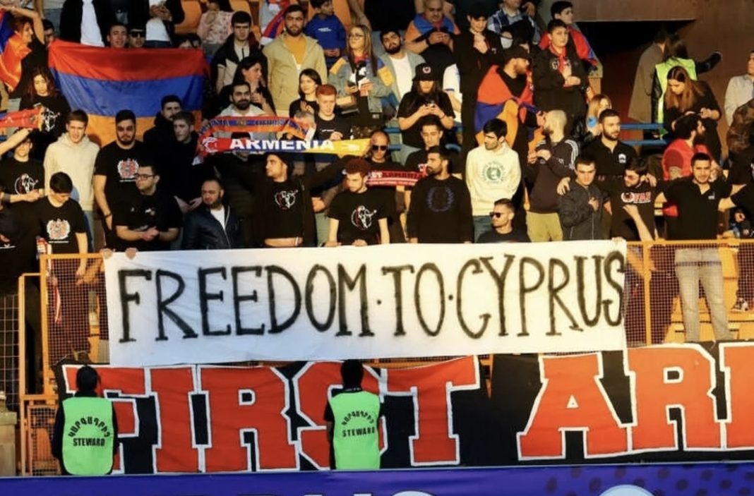 Στην πρωτεύουσα Ερεβάν, η Εθνική Κύπρου αντιμετώπισε σε φιλικό αγώνα την αντίστοιχη της Αρμενίας (2-2). Η κίνηση των φιλάθλων της πολύπαθης χώρας να «σηκώσουν» δύο πανό για την τουρκική εισβολή συγκίνησε τους Κύπριους και θα πρέπει να προβληματίσει τους Έλληνες, ειδικά με τα όσα αποκαλύπτονται (και μεθοδεύονται;) τις τελευταίες μέρες γύρω από τις θέσεις της ελληνικής κυβέρνησης.