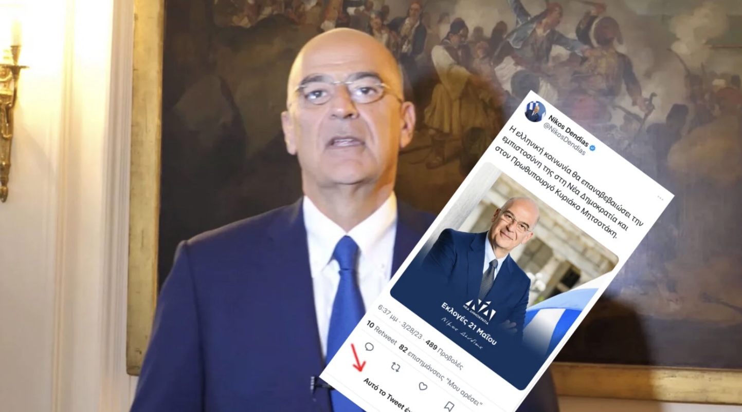Κάποιες φορές όμως ο ενθουσιασμός είναι κακός σύμβουλος. Αυτό φάνηκε από το ενθουσιώδες tweet που ανέβασε στον προσωπικό του λογαριασμό ο Νίκος Δένδιας, όπου ναι μεν έκανε αναφορά στον πρωθυπουργό, κυριαρχούσε όμως η δική του φωτογραφία σε πρωθυπουργική μάλιστα πόζα!