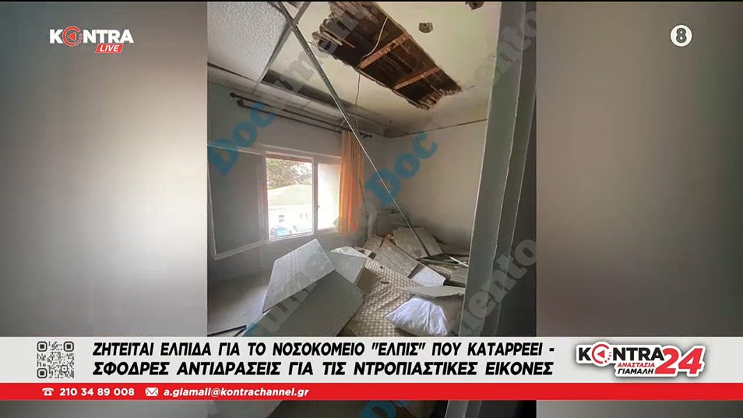 Εικόνες ντροπής στο νοσοκομείο Ελπίς: Κατέρρευσε η οροφή στους κοιτώνες των παθολόγων