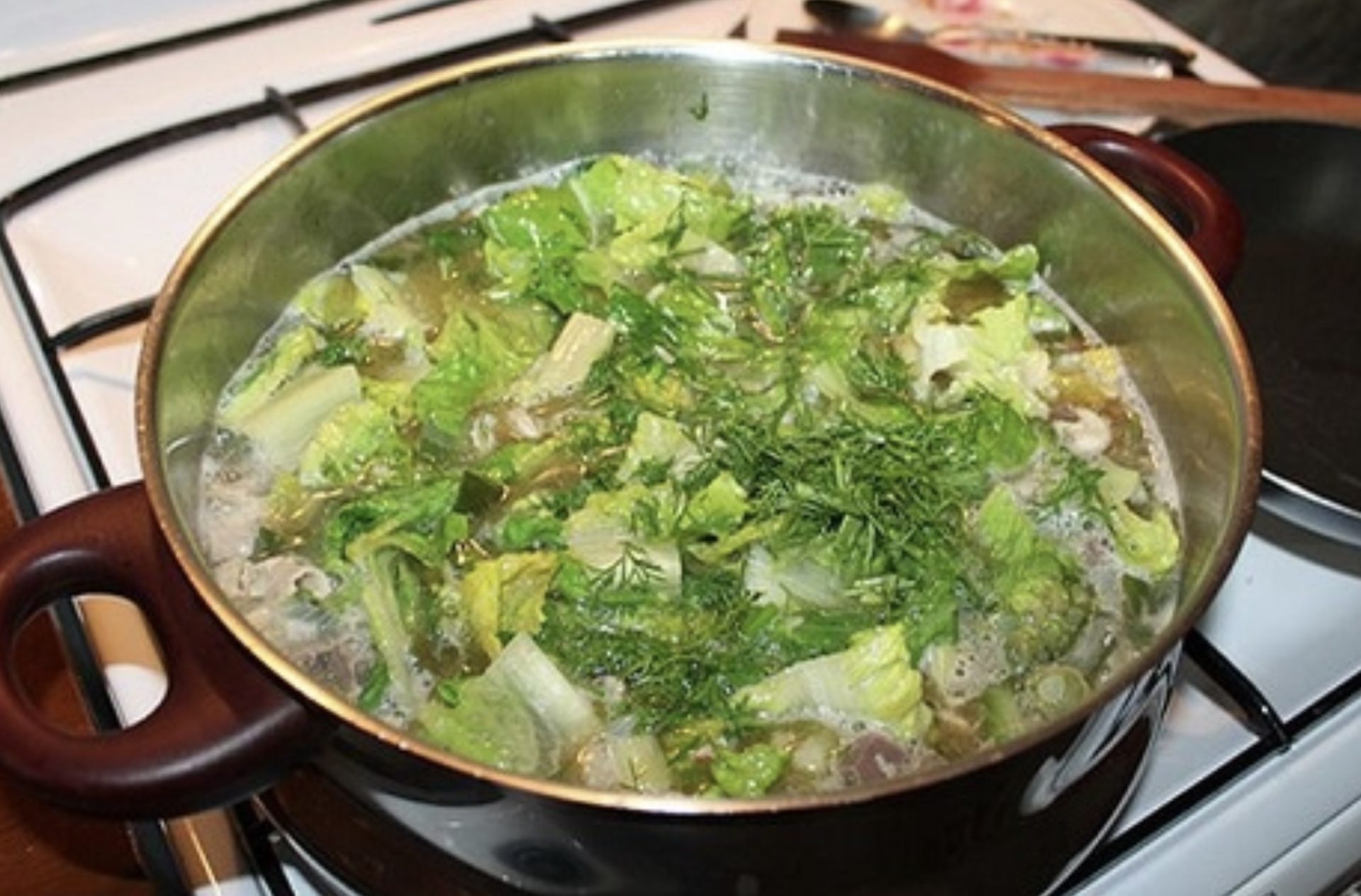 Ανοίγουμε την χύτρα και ρίχνουμε στο φαγητό τον άνηθο και το μαϊντανό, τα οποία έχουμε αφήσει για το τέλος.