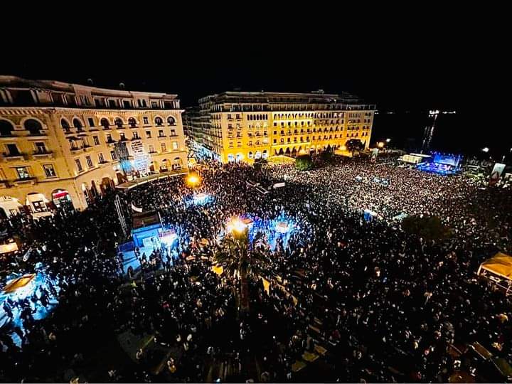 Χιλιάδες κόσμου βρίσκονται στην πλατεία Αριστοτέλους σε ένα πρωτοφανές ξέσπασμα οργής ενάντια στην ιδιωτικοποίηση του νερού που απεργάζεται η κυβέρνηση Μητσοτάκη.