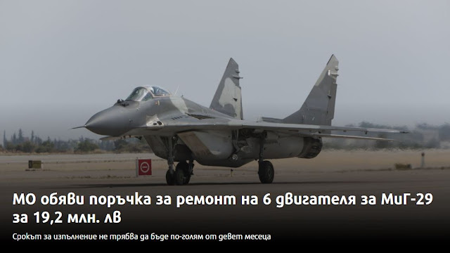 Πριν λίγες μέρες η Βουλγαρία παρέλαβε τον πρώτο κινητήρα αεροσκαφών για τα βουλγαρικά μαχητικά MiG-29 από την Πολωνία. Εκκρεμεί συμβόλαιο για δεύτερο κινητήρα.