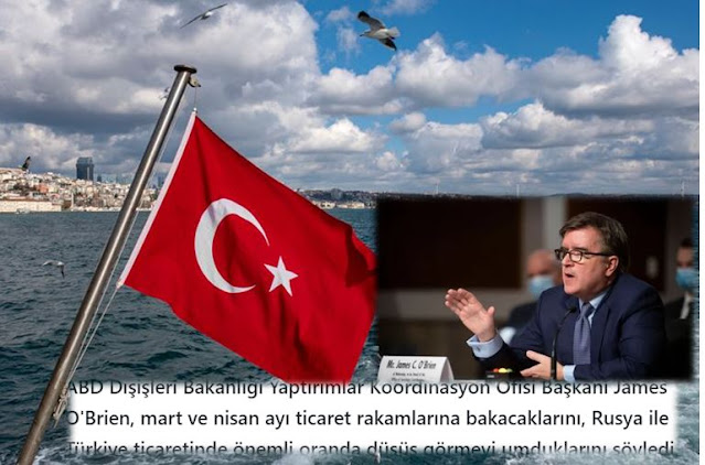 Ο Τζέιμς Ο’ Μπράιεν, Επικεφαλής του Γραφείου Συντονισμού Κυρώσεων του Υπουργείου Εξωτερικών των ΗΠΑ, δήλωσε ότι θα εξετάσουν τα εμπορικά στοιχεία μεταξύ Τουρκίας και Ρωσίας για τον Μάρτιο και τον Απρίλιο για να διαπιστώσουν εάν υπάρχει σημαντική μείωση μεταξύ των δύο χωρών.